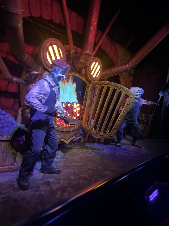 I think Maestro still sounds like himself, the difference is that Richard Doyle used a less antagonistic tone of voice in the new recordings. That's literally the most authentic voice acting you can get without reusing the original recordings. While I agree that I miss the heavily antagonistic and scary tone I've seen in videos of the original, I think the new version is what the park needed. The music does need to be turned back on and the audio levels fixed throughout the whole ride. I think the park and Sally Dark Rides will be making some adjustments in the upcoming weeks while the park is closed. The ride speed also felt slow, but I'm not entirely sure about that being the case. I have a theory that some things like the speed were set a certain way for the first rides (such as the decreased speed to help everyone get used to the new loading arrangements) and will be fixed. -