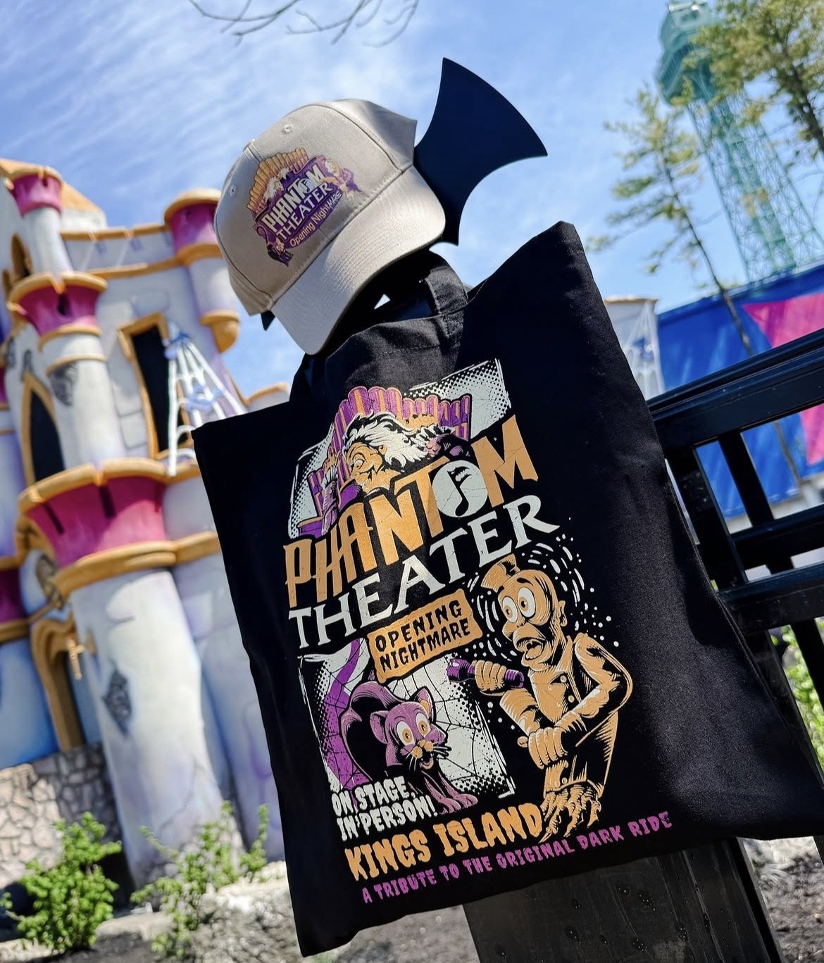 It looks like we're also getting a look at the "trade secret" wait time sign (as it was referred to by the City of Mason) 😂 Aside from that I like this look for the ride. The signs haven't been installed yet, but it looks like the mounting points are still there. Thank goodness the teeth were removed from the entrance. The windows above it look like they could use some decoration, though. It also looks like they replaced the lanterns that used to be on the front of the facade. Those might be the base for the lanterns so maybe they'll come back? I haven't been able to see any lights on the facade from the webcams but I hope it has some fun lighting. As for the merch stand I'm a little intrigued by the wording. It looks like it says "MERCH" and "ICE, COLD SODA" with either a fancy "and" or something else in between them. Personally, I think it's an odd choice to include the comma between ice and cold. They also chose to leave "Opening Nightmare" off of the merch stand's sign, so I hope they'll also sell some original PT merchandise in addition to the PT:ON merchandise. Some Phantom Theater Encore merch would also be nice!