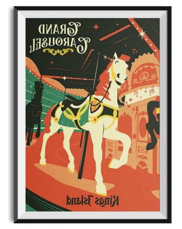 There’s a HUGE flaw with that new poster. The horse is facing the wrong way. Carousels always turn counter-clockwise. Somebody should have caught that. Tsk tsk tsk. Out of all the wonderful posters they’ve produced, this is my least favorite. Such a shame because the KI Grand Carousel is, by far, the most beautiful thing in the park. Here’s how the image should look: ( minus the obvious backwards wording of course)
