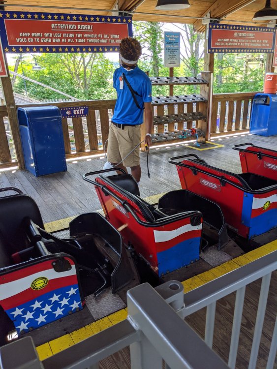 I'm gonna be updating this later, but figured I would update with initial impressions of the park so far. Firstly, signs and stickers everywhere for keeping distancing and wearing masks. A really cool triage tent that you just walk through for taking temperature. they are verifying you have a reservation before you get through the parking gate. On roller coasters they are running every other row for each train then spraying them with cleaning spray, running them empty and then loading after return. Mobile ordering works with food places, ordered with the barbeque place here successfully.