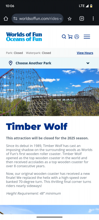 Just stumbled across this information on the world's of Fun website. Looks like Timberwolf is going to be closed all season. Wonder why?