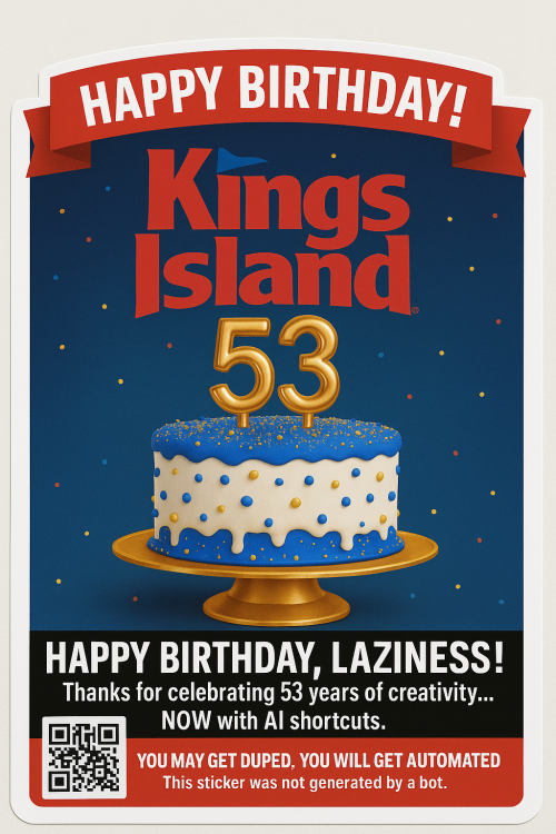 We really need to quit all the cynicism and start appreciating that Six Flags has finally revealed the true purpose of a theme park: quarterly returns. Sure, a ride might be closed four days a week in peak season, but have you seen the electric bill? And don’t even get me started on paying employees. Why bother hiring ride ops when you can run one side of Racer and rebrand the 95-minute wait as “demand.”? Who needs in-park marketing when you can schedule 47 identical “Join us for thrills!” posts with a stock photos of coasters at other parks? Kings Island has evolved from a beloved regional park into a case study in corporate austerity cosplay. Every corner of the park is now a reminder that enjoyment is a variable cost, and your nostalgia a line item to be optimized. Edit: Just got an email. They're replacing Haunt with a corporate seminar called "Spreadsheets of Terror." Attendance is mandatory for Gold Pass holders. BYO calculator.