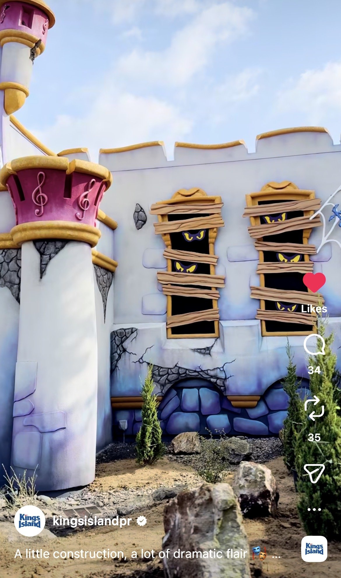Thought the same. The music notes gave me Magic Kingdom Birthday Cake Castle vibes at first. Eyes looked a bit cartoony, too. But cleaning those up, along side some of the more castle-y bits made it look a bit plain.
