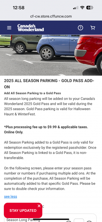In the spirit of nickel and dime, they do list a gold pass parking add-on for $87 Canadian dollars. Also the fine print says you have to purchase pass at your home park and may actually enforce that this year with such a cheap gold pass $99 Canadian dollars (about $75 USD)