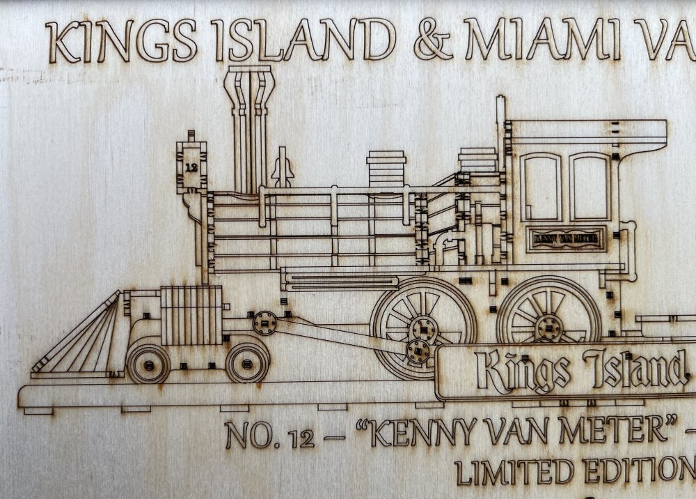 I recently picked up one of the Coasterdynamic K.I. MV Railroad cutouts. To be honest, I am not a big fan of the whole look of the cutouts…but that hasn’t stopped me from buying them. When my set arrived today I was amused that what really impressed me about this set was the box/crate that it came in! It really is a work of art. Here is a photo of the crate from the KI Gear site: And here’s a couple close-ups that I took of mine…although my photos do not do the actual quality justice. So, finally, here is my new product suggestion for the park…how about a new line of artwork done the same way as the front of this crate? (Is is done by laser?) I would like to see some rustically framed artwork, they could be in different sizes, but I would personally prefer 11x14 inches. I think this rustic look would be perfect for rides like The Beast, Mystic Timbers, Diamondback. They could make multiple different variations for each ride…such as, for The Beast, one could be the logo, one could be of the ride, one of the warning signs etc…, if the park didn’t overcharge and made them reasonably priced I think the park could sell quite a few of these. As a further recommendation, if the park does possibly make something like this…and decides to make them Limited Edition….PLEASE do not incorporate the words “Limited Edition” into the actual artwork…the reason I say this is because when I buy something that I want to display, I am displaying it because I like what it looks like…not because I am trying to impress anyone who sees it. (As an example, I think this is one of the main flaws of the “Limited Edition” pin sets…who wants to look at that bottom line all the time?) To me, that bottom line distracts from both the pins & the background artwork…I mean really, do they expect someone’s friend/relative to see it and gasp in amazement “Wow! And it’s limited edition!” So, in conclusion, I hope someone from the park’s merchandising department considers this idea in the future…although, no hurry, I’m still trying to catch up with everything I want from this year!