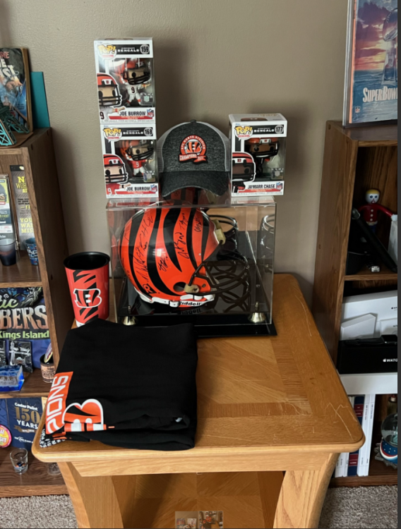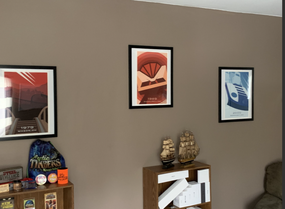 Sorry to bump a thread that was last responded to in 2020, but I feel like I'm at a point to where my home office is "complete" in terms of roller coaster decor, however as of late, I've started to add some Bengals gear due to their successes. There are a lot of pictures attached - apologies in advance. Some of these were taken earlier on in the process. I have collected quite a bit over the last 10 or so years and have quite a few shirts that I can put within this space as well, such as the one for Banshee Media Day and the First Rider Auction for Mystic Timbers. The shot glasses on the shelf - there are several non-KI ones, such as Dragster, Millennium Force, Maverick, Valravn, Magnum XL-200, Lightning Rod, Intimidator 305, and Fury 325 from my travels.