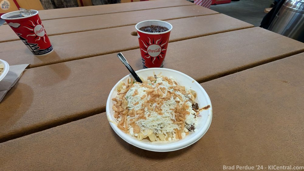 I am going to put the menu in this thread for easy reference. French Corner: Café du Père Noël White Chicken Chili: Chef’s own recipe of Stewed Tender Chicken, White Beans, Bell Peppers, Herbs and Spices served in a Bread Bowl. Shepherd’s Pie: A hearty filling of tender Beef and Vegetables simmered in a Rich Stock, topped with creamy Mashed Potatoes and served with a Baguette. Pull-A-Part Bread: Our famous Kings Island Cinnamon Treat, topped with Cream Cheese Frosting. Rivertown Potato Works: Old St. Nick’s Potato Factory Holiday Dinner Fries: Turkey, Roasted Mushrooms, White Gravy, Gruyere Cheese, Cranberry Sauce and Crispy Fries. Honey Ham Fries: Our Fresh Cut Fries topped with Honey Glazed Ham, Shredded Cheddar Cheese, Cheese Sauce, Mustard Glaze and Green Onions. Coney Bar-B-Que – Smokehouse Christmas Country Christmas Platter: Roasted Turkey Breast, Honey Pork Loin, Holiday Sausage, Cranberry BBQ Sauce, Corn Souffle, Green Beans, Sweet Potato Fries, Drop Biscuits and a featured Hot Holiday Dessert. Other: Hand Breaded Chicken Tenders and House-Made Smoked Pulled Pork. Wishbone Grill It’s a Wonderful Chop: Grilled Pork Chop, Caramelized Onion, Apple Compote and House Chips served on a Bun. Broccoli Cheddar Chowder: Stewed Tender Broccoli, Potatoes, Shredded Chicken, Cream and Cheddar Cheese in a Bread Bowl. Enrique’s Cantina: Enrique’s Christmas Café “You Mac Me So Happy”: Build your own Mac & Cheese! Choose from over 25 toppings selections. Miami River Brewhouse: Blitzen’s Brewhouse Christmas Turkey Sandwich: Crispy Turkey Sandwich, Lettuce, Tomatoes and Cranberry Aioli on a Toasted Bun. Coney Treats: Candy Cane Concoctions Pull-A-Part Bread: Our famous Kings Island Cinnamon Treat, topped with Cream Cheese frosting. Festhaus: Tannenbaumhaus Grandma’s Holiday Meatball Hoagie: House-Made Meatball, Marinara, Provolone and Parmesan Cheese. Grain & Grill International Kitchen: Scrooge’s Sausage Haus Turkey Dinner Ball: Served with Sage Turkey Gravy, Jellied Cranberry Sauce, Holiday Cranberry Sausage, Classic Smoked Sausage, Crunchy Chicken Tenders, Macaroni & Cheese, Brussels Sprouts, Garlic Potatoes, Winter Salad and Greek Salad. World’s Greatest Funnel Cakes (International Street) & Rivertown Funnel Cake (Rivertown) – Sugar’s Cake Factory & Claus Confectionary Gingerbread Funnel Cake (Sugar’s Cake Factory only): Spiced Gingerbread Funnel Cake topped with Gum Drops and a Mini Gingerbread Cookie. Cherry Cordial Funnel Cake (Sugar’s Cake Factory only): Chocolate Funnel Cake topped with Cherry Filling, Whip Cream, Powdered Sugar and Chocolate Curls. Eggnog Funnel Cake (both locations): Crispy Funnel Cake topped with Eggnog Frosting, White Chocolate and Cinnamon Sugar. Crème Brûlée Funnel (Claus Confectionary only): Crispy Funnel Cake topped with Cream Cheese Frosting, Brûléed Caramel, Cinnamon and Powdered Sugar. Pull-A-Part Bread (Claus Confectionary only): Our famous Kings Island Cinnamon Treat, topped with Cream Cheese frosting. Chicken Shack: Dasher’s Diner Naughty List Chicken Tenders: Spicy dusted crispy Chicken Tenders. Jukebox Diner: Tinsel Town Diner Holiday Meatloaf Burger: Our blend of Spices, Muenster Cheese, Sweet Ketchup, Bacon Jam, Shaved Red Onion on a Toasted Bun. Sweet Spot Giant Gingerbread Man Coconut Raspberry Snowballs Eggnog Tres Leches Peppermint Bark Brownie What are you wanting to try first? Source: https://www.sixflags.com/blog/kings-island-winterfest-food-guide