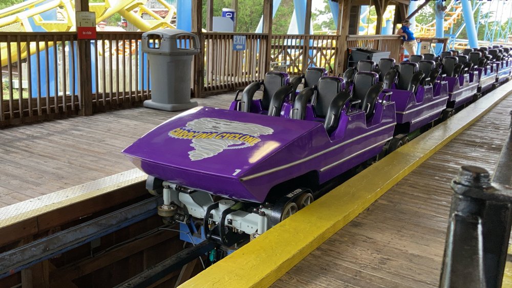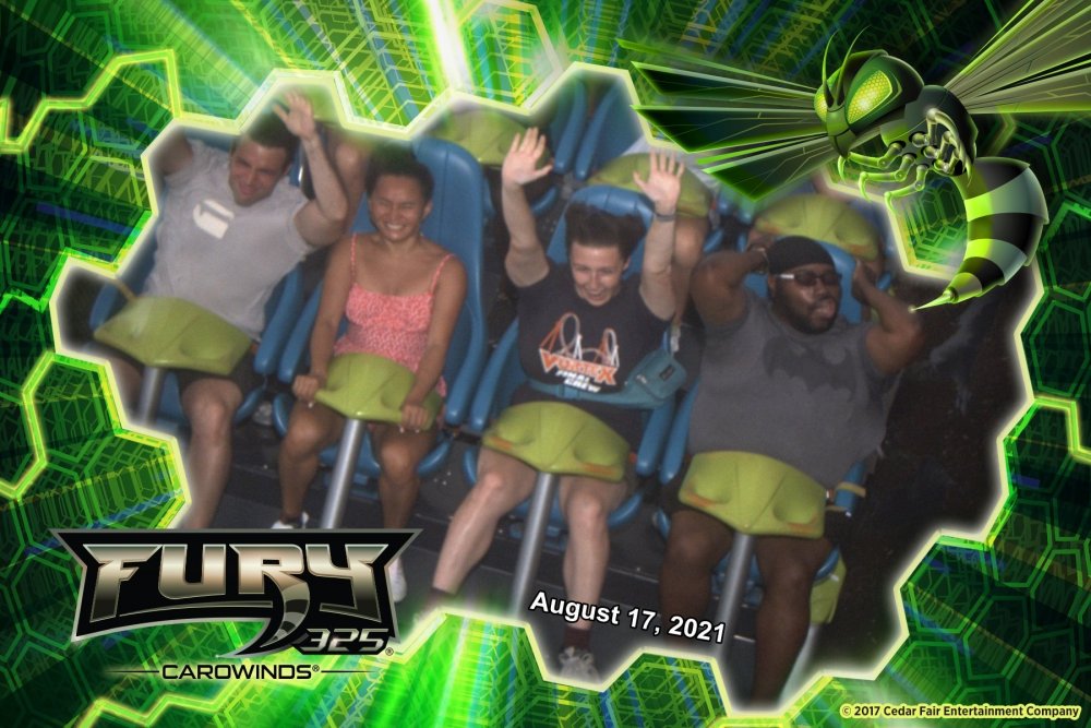 Part 3 (August 17): Carowinds, Day 0.5 ft. Remnants of Fred Today was a day for which I waited years. After seeing it in pictures, I finally saw Where the Carolinas Come Together with my own two eyes as my mom and I drove down Interstate 77. The park’s skyline finally appeared after being on the road all day, and I even spotted a Fury train heading down its first drop! We already planned to spend two full days at the park after the day we arrived, but we arrived early enough that we could spend some bonus time at the park if we wanted! After we enjoyed a hearty Southern-style lunch at a local restaurant, we headed to Carowinds for the very first time. With the remnants of Tropical Storm (now Depression) Fred passing by to our west, it was cloudy and windy. The areas west, north, and south of us were under tornado watches already, but we did not have one…for now. Fred, plus it being a Tuesday, made for a very empty park when we arrived around 4pm. I was pleasantly surprised at how close we could park to the north gate! Walking over the bridge that houses Fury’s “Hive Dive,” a beautiful instrumental rendition of “All I Ask Of You” from Phantom of the Opera met my ears. Instrumental music! Actual orchestral pieces! It set the mood perfectly as I realized I was finally, actually at Carowinds! After walking the state line into the park, I quickly noticed Nighthawk nearby. I kind of wanted to “practice” where I would go first as if I was getting here at opening (in that case I would be going to Nighthawk first), but seeing how dead it was, I realized that ride order would not matter today. Either way, I made Nighthawk my very first ride at Carowinds. The one train running was already being loaded as I walked up into the station, but the crew reopened the gates and invited me to board in row 3. Nearly every aspect (if not all) of Nighthawk reminded me of Firehawk. The most obvious differences were Nighthawk’s station had a single track instead of two, and the in-line twists were more like squished corkscrews. This was the prototype Vekoma Flying Dutchman, after all. Moments later, I was on my way, on my back for the first time since Firehawk’s closing day. The lift hill is night-and-day compared to Firehawk’s lift; Nighthawk’s lift is quiet! Since it was cloudy, I did not yet have to deal with the sun in my face. From the top of the hill until the twists/corkscrews, it felt pretty much the same as Firehawk, albeit a little rougher than I remember Firehawk ever being. I still had a blast though, especially since at one point I didn’t even know IF I would make it to this ride! And yes, the loop is my favorite part of Nighthawk, as was my favorite part on Firehawk. I love the positive G’s from being pushed down onto my back while entering the loop, plus briefly hanging midway through where the train slows down slightly, before going back onto my back headfirst as I exit. The loop is SO GOOD! The twists/corkscrews were definitely different but were fun in their own way. Lastly, there was no helix or Fly-to-Lie but rather we stayed on our backs until gently (NOT abruptly) stopping on the COVERED brake run! Nighthawk has the brake run Firehawk wishes it had, lol. What a great way to start my first Carowinds trip! Intimidator was right across the way, so I walked right into its station and onto the back row of one of its two running trains. As I expected, it’s basically a Diamondback with slightly different stats, a slightly different out-and-back layout, and no splashdown. But like any B&M hyper I’ve ridden, it’s fun! Diamondback may have spoiled me with its splashdown, but I still enjoy sailing by the nearly empty parking lot aboard Intimidator! As I disembarked, I saw a few people staying on, as Carowinds allows rerides. I am so used to quickly getting off and going around! With the currently empty park, I knew I would have to include a reride or two on this abnormal evening. I didn’t reride Intimidator, but I eventually would on a couple of other coasters. I was going to make my way around the park through South Carolina first, but after riding Intimidator I didn’t want to resist the urge to finally ride Fury 325 any longer, so I headed there next. As I approached Fury, my phone buzzed with the notification that a tornado watch was issued for the area. My fear of tornadoes immediately began to act up, but I tried my best to push it aside as my mom and I had been gifted with extra Carowinds time due to our early arrival. For the first time, I was finally face-to-face with arguably the best B&M giga, Fury 325. I was ever-so-ready to “feel the sting” as I walked through its empty queue up to its nearly empty station. The front row had only one person waiting for it, so I joined that row with two other people joining behind me. My very first Fury ride would be in the front seat! I had a nice conversation with the person already in line for the front row, of whom I sat to the right. He told me he had been riding it for the last hour or so and had around 10 rides (if not more). I heard him and others say they rarely, if ever, had seen the park this empty! I knew I was in for a treat. My excitement grew as my train approached the looming 325-foot-high lift hill and the spiel began to play. I saw the top get closer and closer…and then we were there. I threw my hands up as we stared at the ground and flew down the 320’ drop, the wind blowing right in my face! I felt the speed and intensity as the train raced through turn after turn up to the treble clef, where I met sideways airtime. I floated in my seat as we began the “hive dive” into the tunnel and made the return trip over airtime hills and through the helix. When the train hit the brakes, I caught my breath as I realized…I finally rode Fury 325! And it was amazing! Much like Orion, though, I knew it would take a few rides for me to warm up to Fury, but I now had a great idea of why many enthusiasts