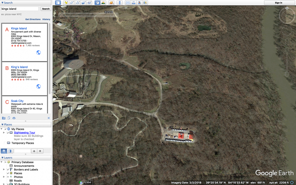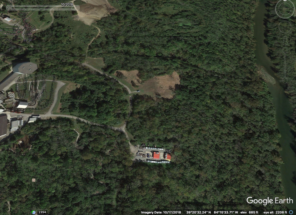 I think we also still have to consider that there is new clearing directly behind Firehawk's former location as well. The first drop of this new coaster could drop into that new clearing towards the Little Miami, then make a sharp turn left where the clearing is at SOB's former helix site and up to all of the open space behind Banshee. Something else to consider is that all of the new clearing in the former DA area could be for an X-Base expansion of some kind. Hence the possible new maintenance building to replace the old ones .