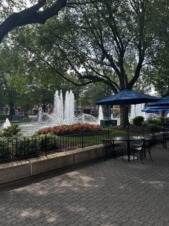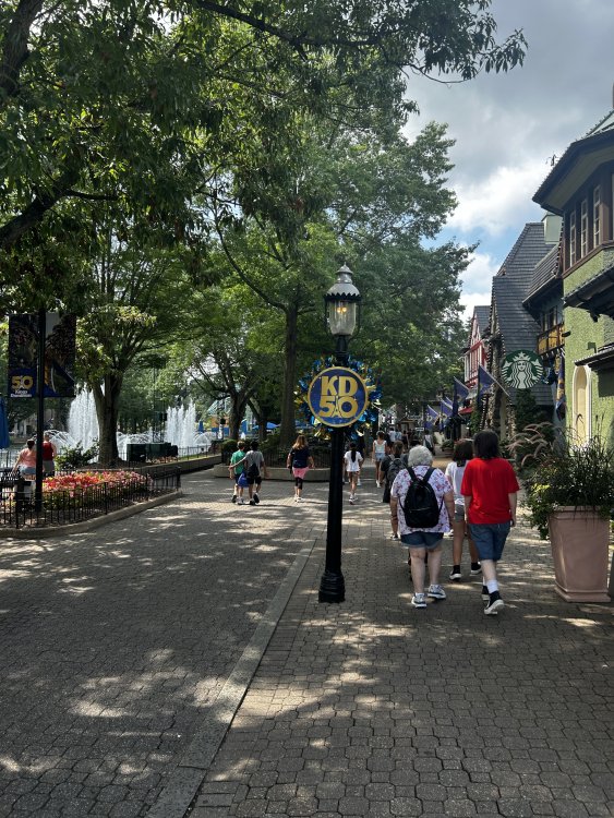 My son really got into the history of KI during our 50th, so we really wanted to experience the "other KI" during its 50th this year. We went to the park on Sunday evening and all day Monday. It was beyond dead, like park right at the entrance at 5:30 pm dead. Thought we would do a ride or two and dinner Sunday evening, but we almost could’ve skipped Monday with how much we knocked out Sunday night. KD is BEAUTIFUL on approach and walk in. It was wonderful to see full fountains that had mass and noise. It was amazing to see an International Street that looked like a park. There were gas lights. There were more interesting buildings with shaded and covered seating. It’s going to be a shock walking back into KI after being reminded how full and lush it used to look there. The pavement is a bot of a mess where the curbs were just shaved down and the ramps filled in years ago when the blacktop street was eliminated. It’s crazy to realize no major reworking of the pavement has occurred since the major redo. The Eiffel Tower looks like it is literally placed in a landscaped park. It is such a refreshing change from the patch of flat grass our sits in. Turning toward Old Virginia, it was amazing to see a working waterfall, then another one at the entrance to the water rides. That whole area had almost a Dollywood vibe to it. Love the antique cars where they are with the long path and and the dense woods. The view coming back from that ride across the bridge looking at the theatre was just perfect. Grizzly had a super odd entrance. We actually passed it the first two times in the area and had to really look to find it finally. That seems like a big miss for a (now) great coaster. White Water Canyon was also way better here. The setting hasn't been cleared out as much, and it truly feels like a mountian rushing river. The waterfalls look great and depite the odd indoor portion with creepy static mannequins, the entire experience felt way more themed. It was so cool to see a dense vine tunnel as we walked to Twisted Timbers. WOW what a great ride. Its hard to be critical of any operations since we walked right onto almost everything both days, but this was one I would still wait for. We need this - LOVE Mystic Timbers, but I think this actually edges out SteVe for the slower pacing and “you can see it coming” feeling. Candy Apple Grove seemed agin just more shaded and lush. Its odd that a younger park feels more established than its older sister. I like the carousel and ferris wheel there. Give the area a full “old time amusement park” feel. It was great to have CHIPS with a bowl at the burrito place and RED SAUCE with pizza. Victoria’s looks nice after the redo and I love the outdoor seating. Jungle X is what Adventure Port wishes it could be. Great theming and atmosphere. The shop there along with all the other shops had much stronger thematic merchandsing that KI. Food was OK, but the themed atmosphere again was almost Disney level. Rides in this area were all solid, but Rapterra is the odd exception. Rapterra in the front feels brand new - in the back it feels like it’s as old as the park. A few month old coaster shouldn’t bee this rough and janky in the back. I don’t remember Wild Eagle having this much vibration and bounce in the back. It was actually very painful. The load process was also a mess. There’s a separator at the outer “temple” telling you to go to right side or left, but they have to keep leaving and walking to the station to see the balance of people on each side. Then when you get to the station theres a single switchback to the gates. People clump up at the first gate, then you have to force your way past them to get to the other gates that are wide open. There seems like there needs to be station associate assigning people to gates, or loading the train back to front. It just gets messy and people get attitude like you are cutting around them, but there would be people in front of us just standing there not filling in empty gate slots, so we went around them to take a spot for the next train. BooBlasters was WAY better. KI should be embarrassed by the state of the exterior and queue of ours. The guns with lasers were great. The outdoor queue set the mood. The placement seemed super odd of that and Dominator just plopped along a path. Planet Snoopy could easily be Camp Snoopy as it already feels like it is deep in the woods. Just a much more relaxing setting with shade for rides with kids. Entertainment was beyond disappointing. There’s a key theatre (Peanuts Showplace) sitting empty. There’s action theatre unused, and even the KD Theatre was unused as they could figure out how to not have slipper aisles after only 2 bubble shows on Saturday when the last show, all shows Sunday and Monday were cancelled. It sounds like thats running again, but that should even BE the signature entertainment for the 50th. The “closing light show” was lame and no one seemed to be paying any attention to it. Its just music and lights on the tower and I street buildings. The bandstand show was weak. There was no parade “street party” even though the ap shows images of our 50th parade like they were going to do it there. Two left over floats from ours roll out with people on them in rainbow outfits (not the matching gold and blue). They hop off, twirl some ribbons, sing songs from the decades of KD, hop back on the flats and ride off twirling ribbons. It comes off as very amateur. I was really hoping for a “magical 50th”, but the park itself more than made up for that. I give the physical park edge to KD hands down. I give the “whats left of live entertainment at 6flags” award to KI. Definitely make the trip to this park if you want great rides, minimal waits and a beautiful reminder of how wonderful KI USED to look. WATERFALL!!! Adds so much to the area. Wonderful theming in the restaurant. International PARK more than street. Beautiful view... to a