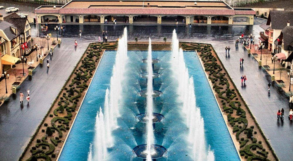 Peering down from that same vantage you can admire the amount of landscaping that the park dedicated to the Coney Island / Old Coney / Coney Mall area. In fact, that was one of the most impressive aspects of the park as a whole—all the trees and bushes were well-kept, and there was shade in abundance almost everywhere. The effect was rather charming Kings Island landscaping was at one time was quite reknown for it's highly landscaped beauty. The scroll shrubs around the main fountain was so much more impressive than the gravel and squirt guns they have as a fountain now. (Just my opinion)