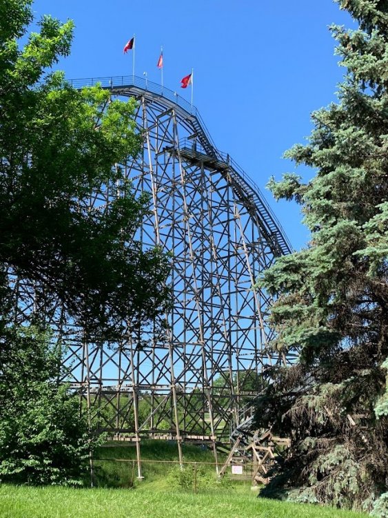 Thanks for the comments! Friday, June 3 (Part 2) Back toward the front of the park, I explored the Route 76 area that Valleyfair overhauled a few years back. It includes their Intamin Impulse (Steel Venom), a few flat rides, a good chunk of the Wild Thing hypercoaster, and Northern Lights. Northern Lights is a Zamperla disk'o coaster, aka the same ride as Kings Island's own Surf Dog. The ride experience was pretty comparable, but this one has LED lights along the track. I didn't have the chance to see the ride at night, but if it's anything like Cedar Point's Pipe Scream, I really wish Kings Island would enhance Surf Dog with a similar lighting package. Next door was Delirious, a Larson super loop. I believe this is the only one of its kind at a Cedar Fair park, which I've always found odd - I know that enthusiasts aren't wild about these rides, but the general public seem to enjoy them and they seem like a smart addition. I didn't ultimately ride this one, but I liked how the ride's marquee was in a planter with purple mulch, matching the attraction's color palette. I took a break from the rides and walked around the park, enjoying the sights and looking for a place to eat. As mentioned in the first post, Valleyfair was a little understaffed, and the number of closed food stands reflected that. There was an interesting stand named Minnesota Eats that featured local flavor, but it was closed. The park's version of Chicken Shack was also closed. A few of the places that were open had (understandably) long lines. I ultimately settled on Mama Chetta's Pizzeria, which was a very standard theme park pizza place. I think the slice of pizza, bread sticks, and the drink would've rang up around $18 or so, but I was able to use my newly-acquired meal plan for the first time here. I had been traveling solo up until this point, but my friend James arrived around here and joined me. We started with a new ride for both of us - Wild Thing, Valleyfair's tallest (207'), longest (5,460'), and fastest (74mph) coaster. The ride was one of only a handful of hyper coasters built by Morgan Manufacturing, which was later purchased by Chance. Wild Thing was a quirky ride. It felt reminiscent of an Arrow (which Morgan founder, Dana Morgan, had came from), with its abrupt transitions and long straight sections. It was still a ton of fun though, and there was a wacky tunnel section midride that was a good surprise. I think I'd rank it below the other Morgan hyper coasters I've done (Steel Force at Dorney Park and Phantom's Revenge at Kennywood), but it was still a great ride and one of the park's best. Up next was High Roller, a classic out-and-back wooden roller coaster from the defunct International Amusement Devices, Inc., which was the successor to National Amusement Device Company. The ride wasn't anything spectacular, but it was enjoyable. It also had a very bright, seemingly recent paint job. One weird thing about High Roller was that it was located in the heart of Planet Snoopy. It wasn't too intense and I'm sure a lot of kids love it, but its location was a tad odd. It'd be like if Kings Island put The Racer in its Planet Snoopy. We next took a spin on Renegade and then Excalibur, James for the first time on each. We did Renegade in the very back, which is easily the best row for the ride. Excalibur was toward the front, which was comparable to my earlier rides on it. The school crowds had been crazy all day with endless middle schoolers in all the queue lines, but there weren't too many younger kids in Planet Snoopy. Considering this, there was almost no wait for Snoopy's Rocket Express, which is comparable to Kings Island's Woodstock Whirlybirds. Unlike the KI counterpart though, it featured open-air vehicles. We decided to give the small ride a spin. Snoopy's Rocket Express was a good break from the back-to-back roller coaster rides, and it gave some nice views of the Planet Snoopy area. I know Kings Island's area won the Golden Ticket Award for ages, but Valleyfair's was really nice and gave the Kings Island counterpart a run for its money. One big thing that Kings Island has the advantage of though is child-friendly coasters - there's four (including Surf Dog) coasters with 44" or lower height requirements in KI's Snoopy area, whereas Valleyfair only had one. We followed-up Snoopy's Rocket Express with another slower ride, Ferris Wheel. Valleyfair's was placed near the heart of the amusement park on a small hill and gave a good panoramic view of its surroundings. I don't know if it was for balancing purposes or staffing or what, but they were only loading maybe a third of the cars. This resulted in what was probably the longest wait of the day, but it wasn't too bad and the ride was worth it. Adjacent to the Ferris Wheel was Corkscrew, which was also one of only two roller coasters I hadn't ridden yet. We followed-up our ride on Ferris Wheel with a spin on this classic Arrow looper. The ride was really pretty and its placement over the water was great, but the experience itself was about what you expect from an old Arrow. A little rough with some sharp transitions and not-so-great restraints. It was a one-and-done for me. We wrapped up our first day at Valleyfair with one last coaster, Steel Venom. I believe this is the last Intamin inverted impulse with a holding brake, which I was excited to try out (I think Possessed at Dorney Park still had its holding brake when I rode it in 2008, but that was so long ago I don't really remember). We rode in the very back. The launches and the twisted spike are great, but the holding brake was honestly more painful than fun. No desire to ride this one again. The park closed at 5pm, right as we were riding Steel Venom. We headed out afterward with plans to return at opening for day two. Day 2 coming soon; any comments welcomed and appreciated! -