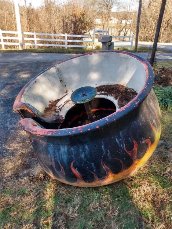 One of the cauldron-shaped ride vehicles from Winnie Witch's Cauldrons has been listed for sale on Facebook. Only $1,950, and it can be yours! https://www.facebook.com/marketplace/item/1786720408469147/ More information about the ride, which operated at Kings Island from 1972 through 1991: https://KICentral.com/parkhistory/past-attractions/winnie-witchs-cauldrons/ (I strongly suspect that the product description on Facebook used this page as a reference)