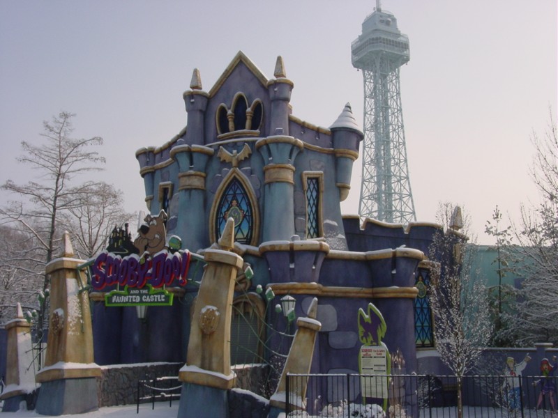 Scooby-Doo and the Haunted Castle opened on April 12, 2003. Similar versions of the attraction had previously opened at Paramount Canada’s Wonderland and Paramount’s Carowinds, as well as comparable attractions at two Six Flags parks.